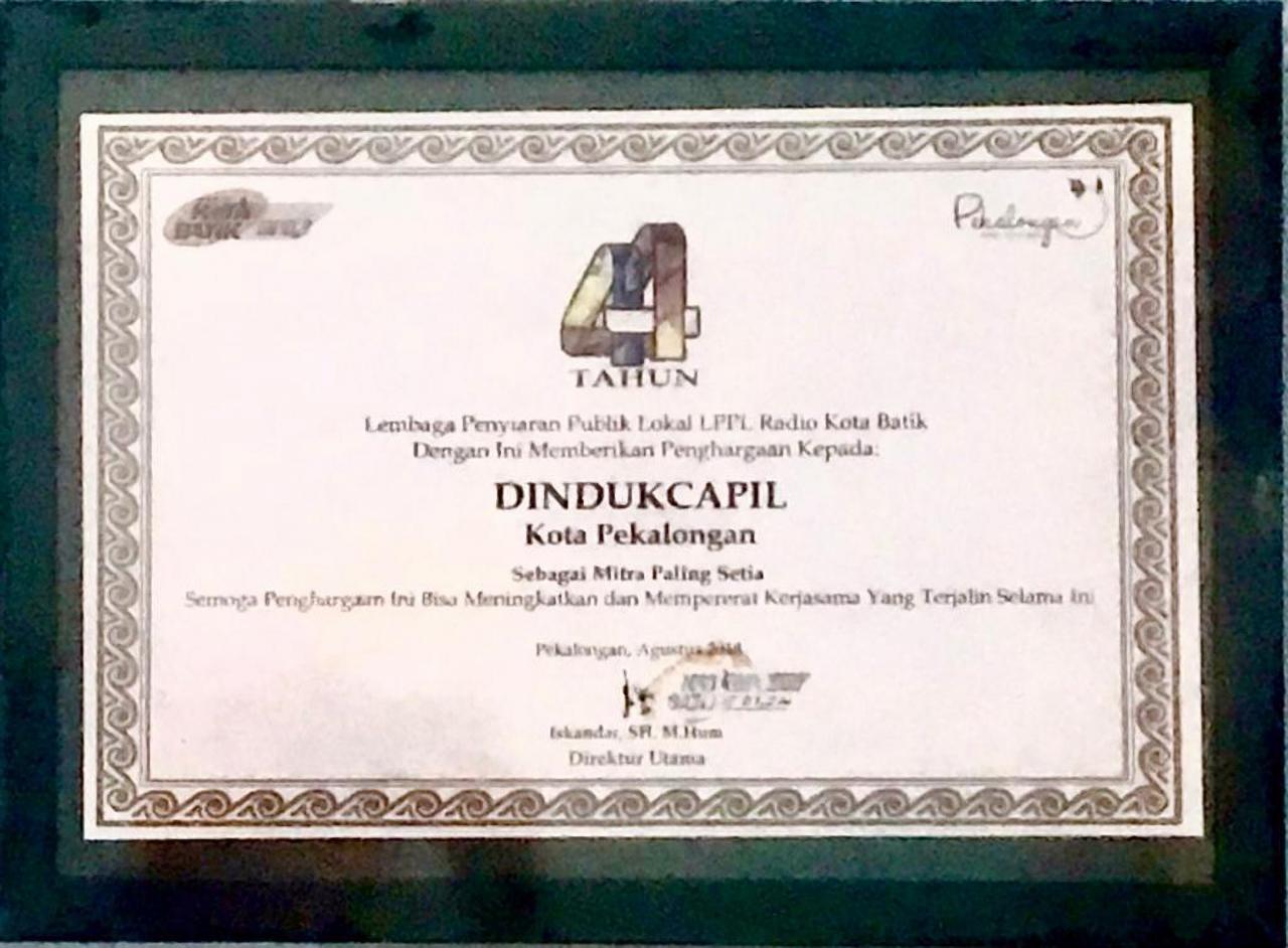 PIAGAM PENGHARGAAN DARI LPPL RADIO KOTA BATIK 2018